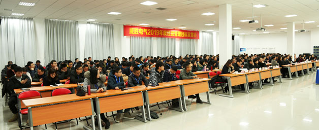 2019年經(jīng)營管理目標宣貫會共三個階段:首先,會議宣讀了2019年威勝電氣總裁任命、電氣核心經(jīng)營管理團隊和各事業(yè)部主要負責人的人事任命。