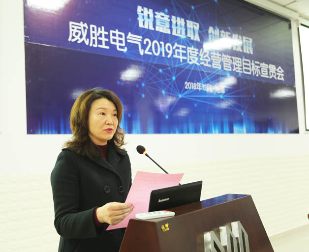 歲序更新催奮進,瑞雪霏霏兆豐年!2018年12月30日上午,以“銳意進取,創(chuàng)新發(fā)展”為主題的威勝電氣2019年經(jīng)營管理目標宣貫會在電氣產(chǎn)業(yè)園會議中心培訓室順利召開。控股董事會吉為主席、控股本部、威勝電氣董事會以及經(jīng)營管理團隊的各位領導、威勝電氣員工代表共計300余人參加了本次會議,會議由威勝電氣行政人事總監(jiān)鄧超艷女士主持。