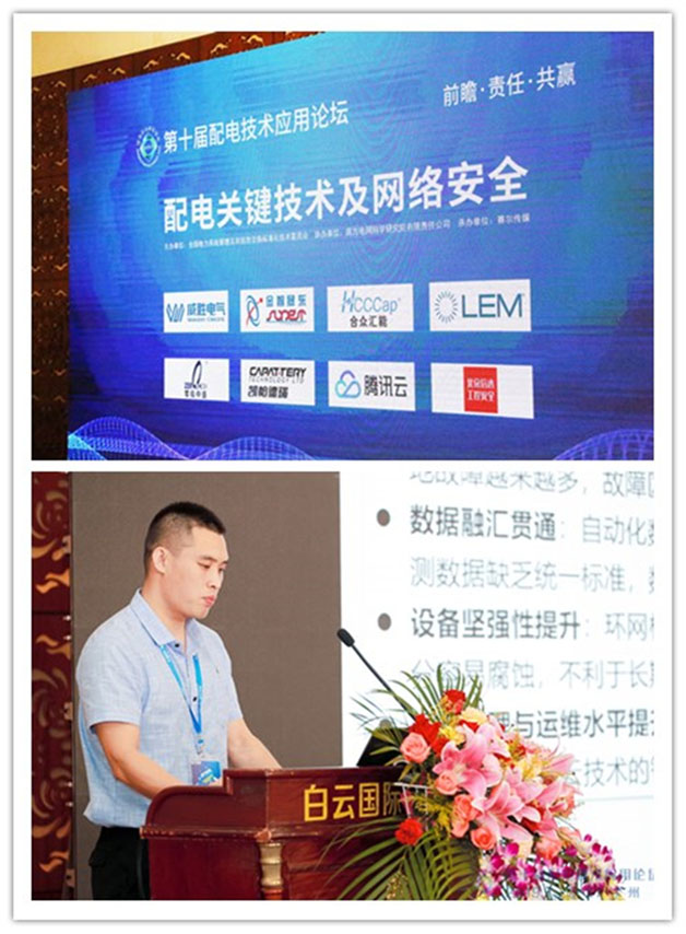 值得一提的是,在“配電關鍵技術與網絡安全的”分論壇上,威勝電氣智能配網事業部華北技術支持經理楊志祥受主辦方邀請,作為演講嘉賓上臺發表了題為《10KV全密封智能分段環網柜開發與應用》的演講,他的演講深度符合論壇主題,深入淺出的闡述了威勝電氣最新研制成果,獲得了與會領導、同仁的高度認可和贊譽,演講結束后,更是引來了眾多嘉賓前來我司展位一覽“智能分段環網柜”的廬山真面目。