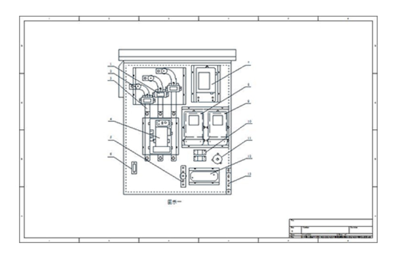 7、一二次功能區(qū)分:一次側(cè)包含塑殼斷路器、電流互感器及一次母線等,位于箱體左側(cè);二次側(cè)有負(fù)荷管理終端或售電控制器、電能表、繼電器、接線盒及按鈕指示燈等,位于箱體右側(cè)。