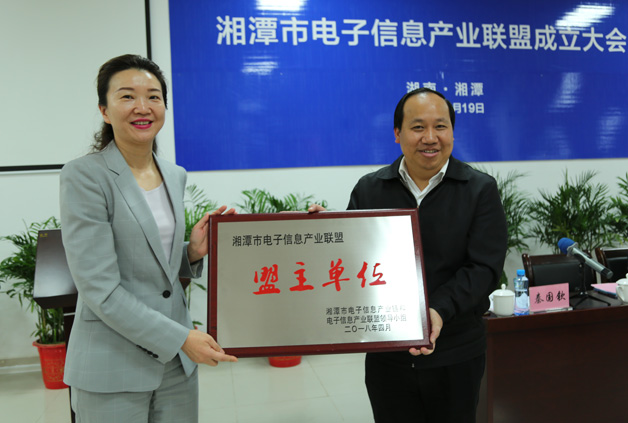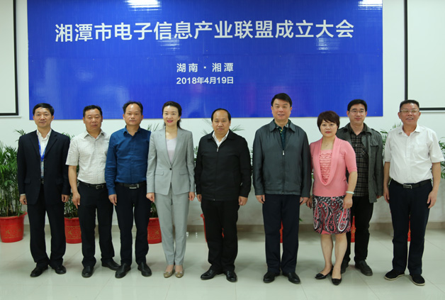 2018年4月19日上午,湘潭市電子信息產業聯盟成立大會在公司會議室隆重舉行,湘潭市委常委、市委組織部長廖桂生、湘潭經開區管委會主任黃韌出席了此次會議,董事長曹朝輝作為公司負責人出席了會議,參加會議的還有電子信息產業聯盟領導小組成員單位負責人、經開區、高新區、市內高等院校以及電子信息相關企業負責人。會議由市委組織部副部長李愛陽主持。