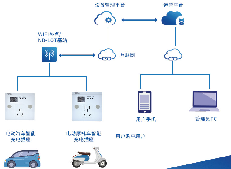 共享用電解決方案融合了現代電子技術、電能計量技術、物聯網通信技術、移動支付技術、計算機技術、網絡技術及手機應用軟件技術,以能源互聯網插座為載體,集成電能計量、智能費控、無線通訊、安全充電保護功能,解決公共場所用電難、管理難問題,確保了安全用電。用戶通過手機掃碼完成移動支付后,云平臺遠程遙控插座內的繼電器開關,用戶通過微信公眾號可實時監測插座電力線路上的電壓、電流、功率、溫度以及用電量,并實現電源通斷控制。