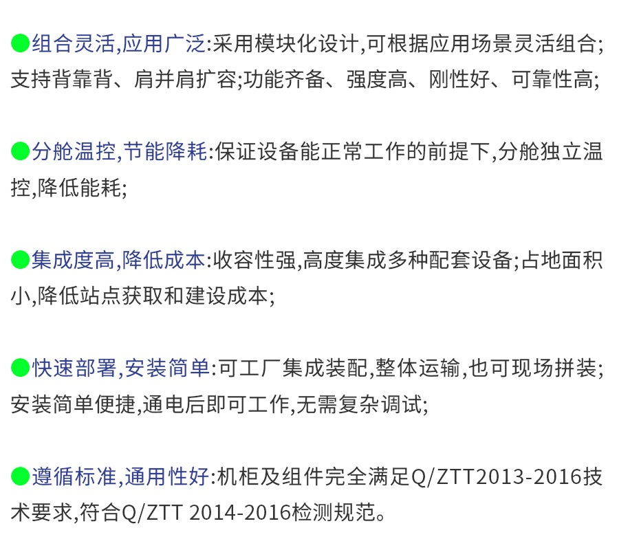 室外一體化機(jī)柜是指直接處于氣候影響下,由金屬或非金屬材料制成的,不允許操作者進(jìn)入操作的柜體。其內(nèi)部集成開關(guān)電源系統(tǒng)、溫控設(shè)備、交直流配電,并能安裝蓄電池、通信系統(tǒng)設(shè)備及其他配套設(shè)備,能夠?yàn)閮?nèi)部設(shè)備正常工作提供可靠的機(jī)械和環(huán)境保護(hù)。室外一體化機(jī)柜以整體集成為原則,采用整站集成的技術(shù)方案,不同客戶的設(shè)備集中管理、集中放置,并適當(dāng)保留擴(kuò)容空間。